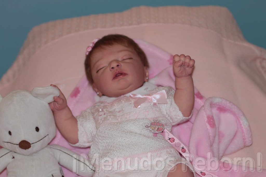 ¡Nicole ha sido adoptada! Preciosa bebé dormida de pelo castaño, mide 51 cm y pesa 1,950 kg.
