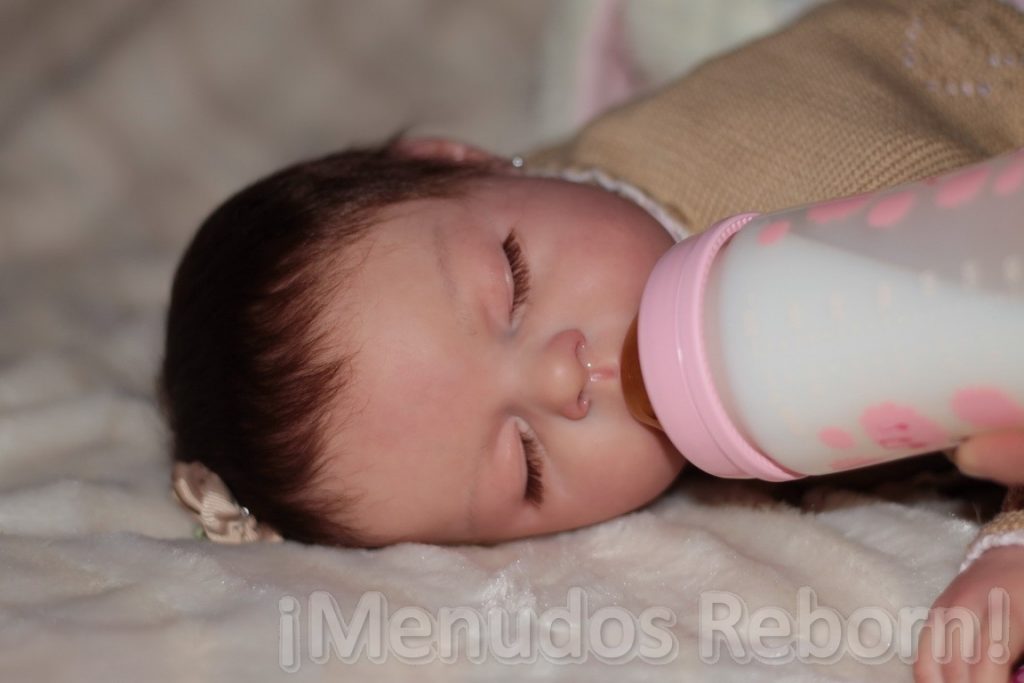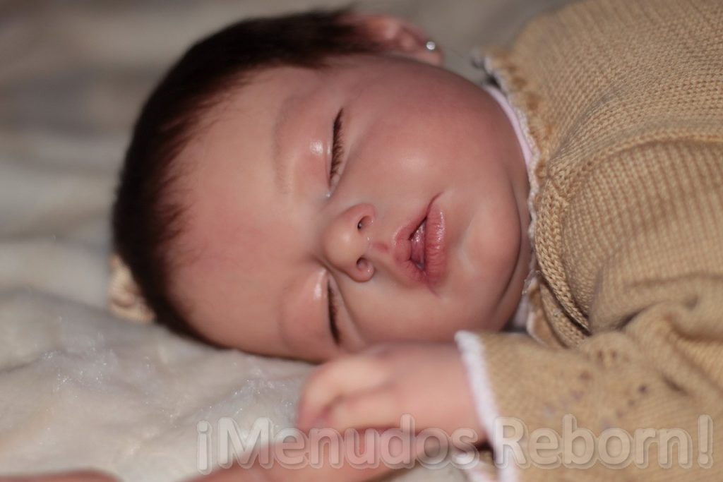 Camila ha sido adoptada. Preciosa bebé dormida de pelo castaño oscuro, mide 52 cm y pesa 3,250 kg.