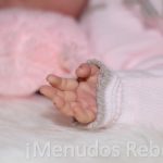 África ha sido adoptada. Preciosa bebé dormida de pelo castaño, mide 51 cm y pesa 2,650 kg.